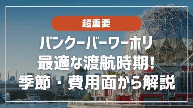 準備・手続き 【超重要】バンクーバーワーホリに最適な渡航時期!季節・費用面から解説 2025年10月21日 なべちゃん http://workingholiday.nabewrite.com/wp-content/uploads/2025/12/ab59f07b8a8218f7666def6f9f80cbdf.png ワーホリのすすめ