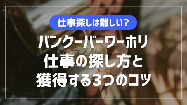 仕事 【ワーホリ】バンクーバーでの仕事探しは難しい?探し方と獲得する3つのコツ 2025年11月26日 なべちゃん http://workingholiday.nabewrite.com/wp-content/uploads/2025/12/ab59f07b8a8218f7666def6f9f80cbdf.png ワーホリのすすめ