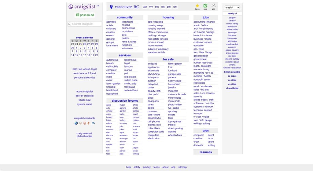 Craigslist(クレイグスリスト)は求人だけでなく、賃貸の募集や不用品売買なども行われているコミュニティサイトです。