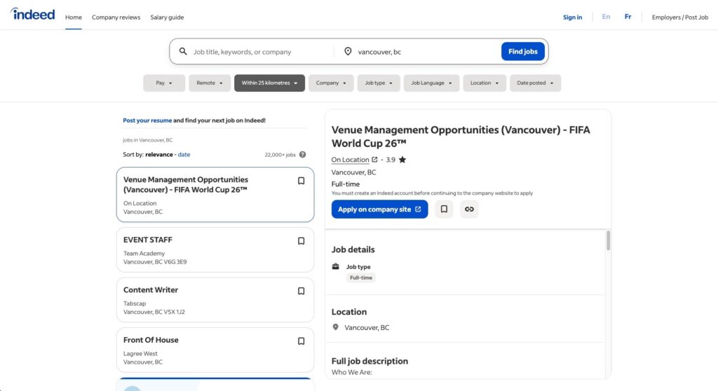 日本と同様にバンクーバーでも複数の求人サイトが存在し、日々多数の求人情報が公開されています。
